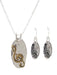 This gorgeous two-tone treble clef music hammered oval metal necklace & earrings set is a beautiful gift for any musician or music lover.