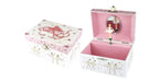 Children will love this magical musical jewellery box from Kaper Kidz. It is sure to put a smile on their faces when they open the lid as they watch the ballerina twirl to the music playing within. Each jewellery box is covered in beautifully illustrated pictures of dancers, ballerinas and more so you can proudly display this jewellery box on any shelf or table. On the back of each box is a small handle that can be wound up to play the music hidden within the jewellery box. The music will only play once the lid is opened and the figurine will spin along to its tune. Each box has been flocked inside with soft velvet fabric , to keep precious things safe . Behind the spinning figurine, a mirror features to show off the figurine as it spins. This music box plays to the tune of blue Danube. Each musical Jewellery Box from Kaper Kidz is designed as a decorative object for sorting and displaying precious items.