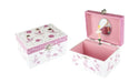 Children will love this magical musical jewellery box from Kaper Kidz. It is sure to put a smile on their faces when they open the lid as they watch the ballerina twirl to the music playing within. Each jewellery box is covered in beautifully illustrated pictures of dancers, ballerinas and more so you can proudly display this jewellery box on any shelf or table. On the back of each box is a small handle that can be wound up to play the music hidden within the jewellery box. The music will only play once the lid is opened and the figurine will spin along to its tune. Each box has been flocked inside with soft velvet fabric , to keep precious things safe . Behind the spinning figurine, a mirror features to show off the figurine as it spins. This music box plays to the tune of blue Danube. Each musical Jewellery Box from Kaper Kidz is designed as a decorative object for sorting and displaying precious items.