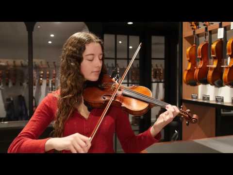 This beautiful 1915 violin by A.E. Smith has a rich tone and powerful projection. It has a dark brown varnish and beautifully flamed two-piece back.