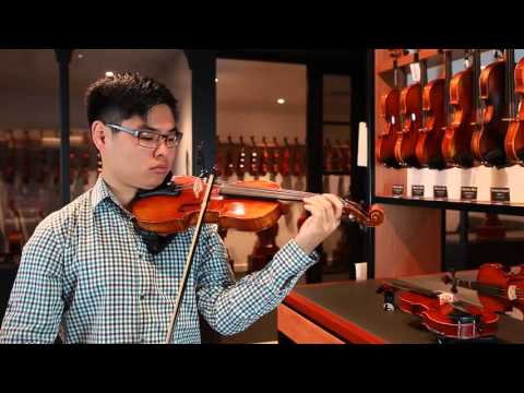 It has a beautiful rich red-brown varnish with golden highlights and accented edges, inlaid purfling, ebony pegs, nut and fingerboard and a tailpiece with in-built fine tune adjusters. It is usually fitted with Larsen Il Cannone strings, which add more clarity and brilliance to the sound. If Il Cannone strings aren't in-stock, then a suitable alternative will be used.