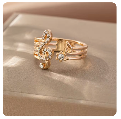View full detailsAdjustable rose gold ring with a quaver shape.