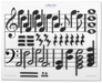 • 8 black note-heads for building chords, and for forming eighth and sixteenth (etc) note groupings, with the whiteboard pen being used to draw the stems and beams.