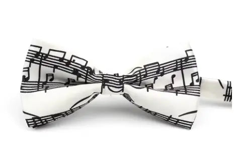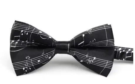 Black bow tie with colourful notes and clefs. 100% Polyester.