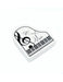 Eraser White with Black Writing in the Shape of a Grand Piano