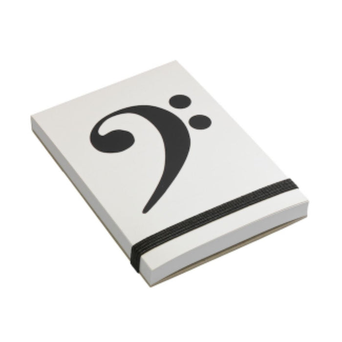 Bass Clef Pocket Notepad White with Black Print and Elastic Band