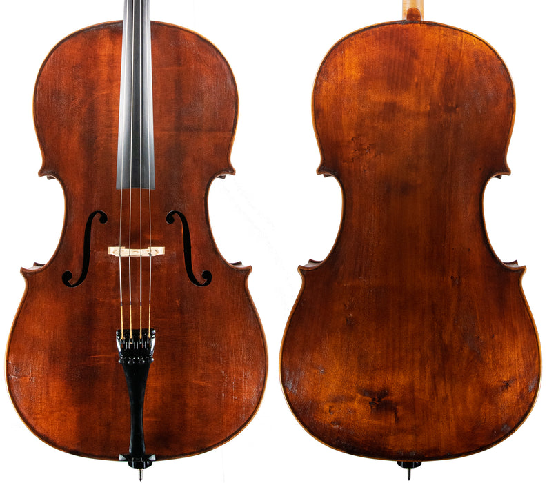 This cello was made by Pasquale Sardone in 2023 in Cremona. Pasquale Sardone was born in Altamura, Italy in 1979. In 2001, he moved to Cremona to attend the International School of Violin Making, and learned to make stringed instruments under the guidance of Maestro Giorgio Scolari. He subsequently began an apprenticeship in the workshop of Maestro Giorgio Grisales. In 2013, he opened his own workshop in Cremona where he makes, repairs and restores instruments. He continues to study classical and contemporary violin making, paying close attention to varnishes and shapes to achieve the right balance between aesthetics and sound.