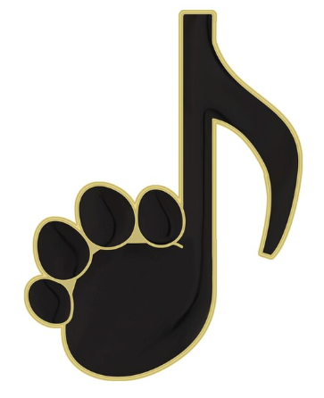 Music Pin/Brooch Black Enamel Quaver in the Shape of a Cat or Dog Paw
